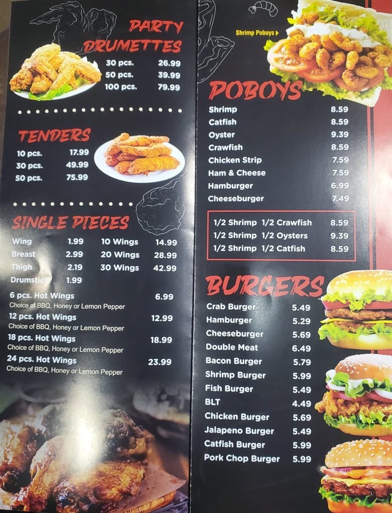 They will offer menu items ranging from burgers and chicken to po’boys and wings. A pre-opening menu can be viewed below.