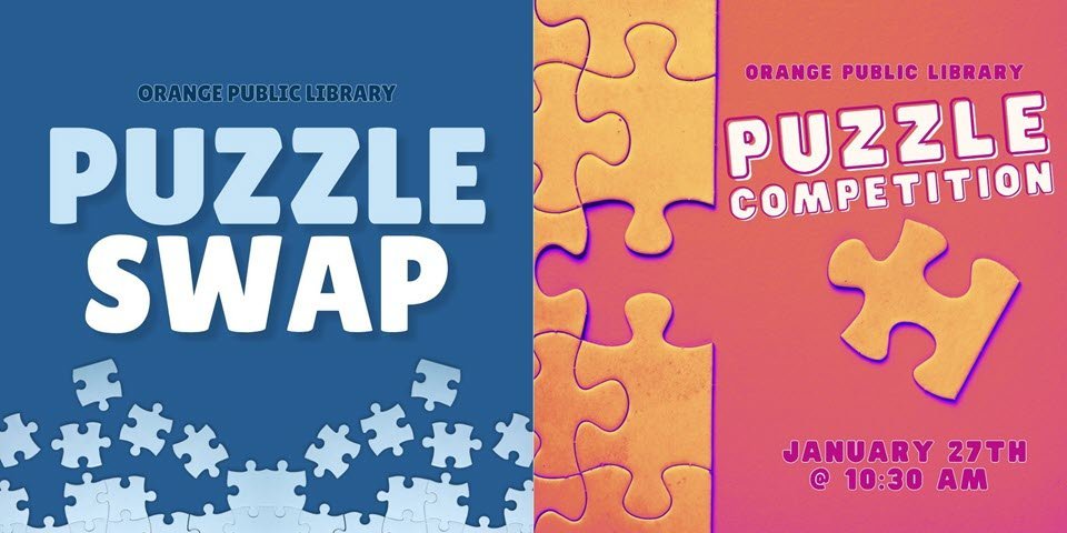 Join the Orange Public Library on Saturday, January 27, 2024, from 10:30 am – 1:30 pm for a Puzzle Swap and Puzzle Competition. The library is located at 220 5th St. in Orange. In the Puzzle Competition, teams will each receive the same 500-piece jigsaw puzzle and will race to see which team can put … Keep Reading